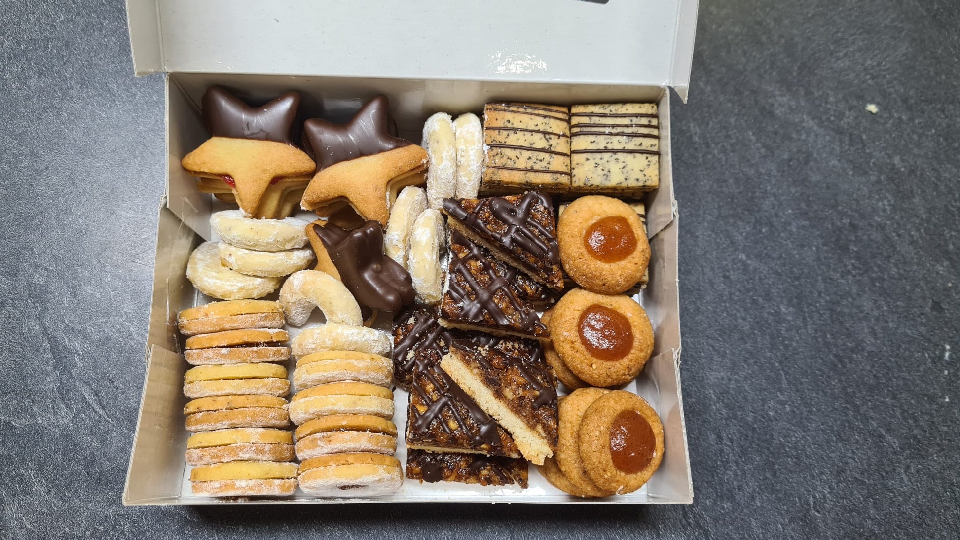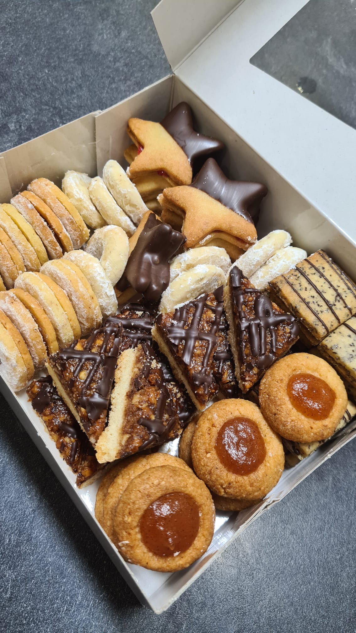 Lass dich von unseren veganen Weihnachtskeksen verführen! Mit viel Liebe von Hand gebacken, vereinen sie traditionellen Genuss mit moderner, pflanzlicher Rezeptur. Jedes Stück ist frisch, klein und fein gearbeitet – perfekt zum Naschen, Teilen oder Verschenken.